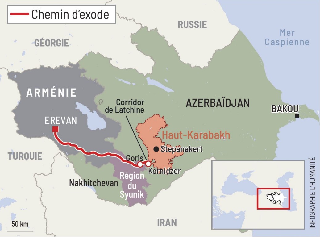 Լեռնային Ղարաբաղի անկլավի բնակչության 80%-ը փախավ Հայաստան՝ չհավատալով Ադրբեջանի նախագահի խաղաղ համակեցության խոստմանը։ Այժմ հայերը վախենում են, որ հակամարտությունը կարող է տարածվել դեպի ռազմավարական նշանակության Սյունիքի մարզ՝ Բաքվի համար կարևոր անցակետ՝ Նախիջևանի իր տարածք մուտք ունենալու համար։