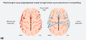 Սակայն հետազոտության արդյունքում պարզվել է, որ արաբախոսների ուղեղում ձախ և աջ կիսագնդերը ավելի ամուր են կապված միմյանց հետ։ Բացի այդ, ուժեղ կապեր են նկատվել նաև ուղեղի քունքային բլթերի և նրանց միջև գտնվող գագաթային բլթերի միջև։